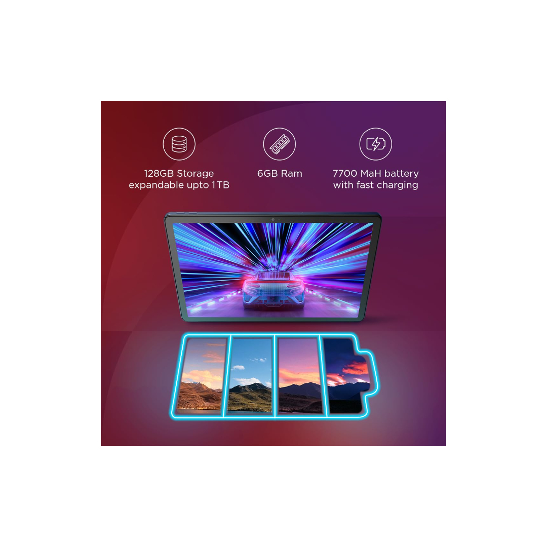 The Lenovo Tab M10 5G offers fast connectivity with 3G, 4G, and 5G support, powered by a Snapdragon 695 octa-core 2.2 GHz processor. It comes with 6GB RAM and 128GB storage for smooth multitasking. The 10.61-inch 1200×2000 px display delivers sharp visuals, backed by a 7700 mAh battery with 20W fast charging. Capture clear photos with its 13MP rear and 8MP front cameras. It also supports memory expansion up to 1TB for extra storage.