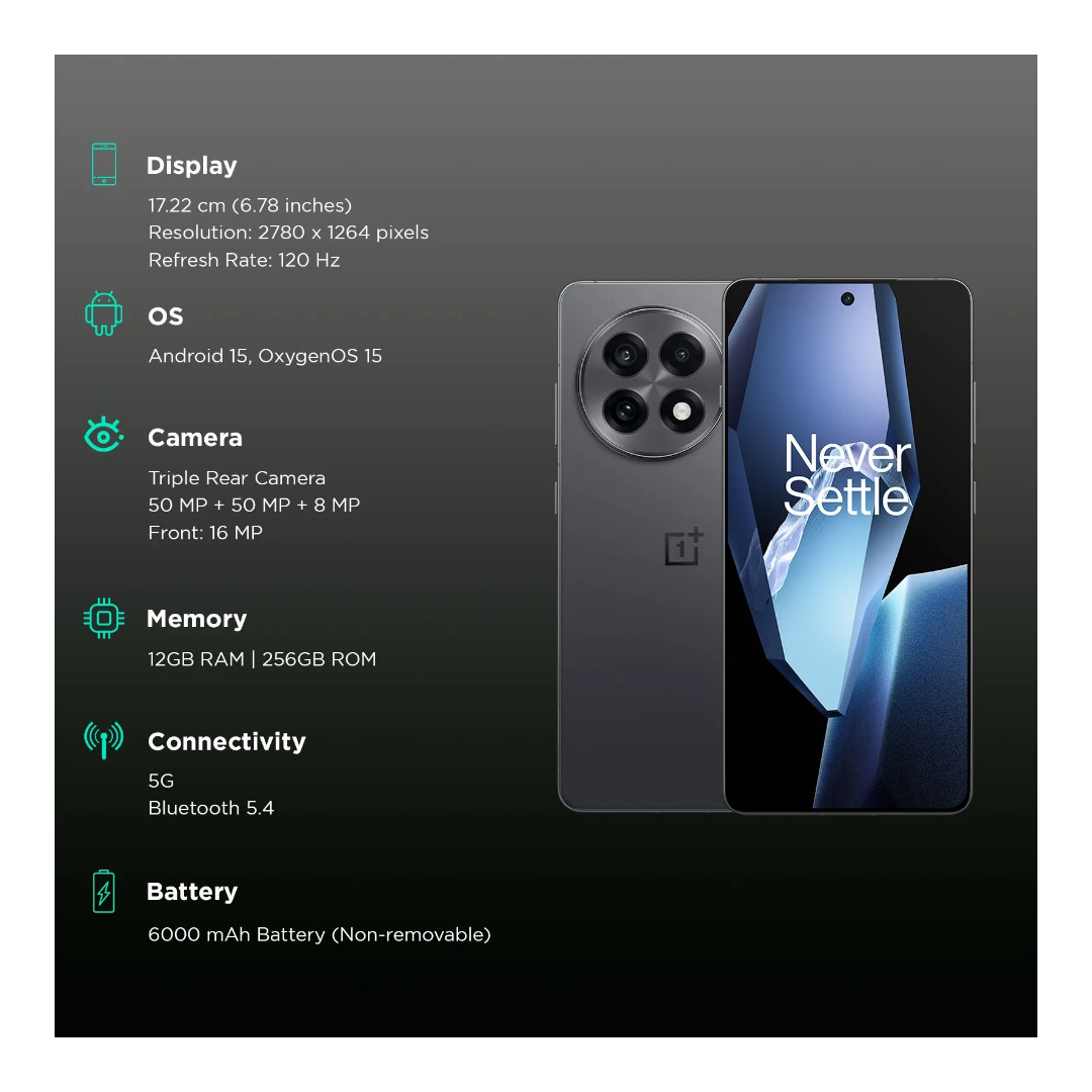 OnePlus 13R 5G delivers reliable everyday performance with its Unisoc T7100 processor, 4 GB RAM, 64 GB storage expandable up to 2 TB, a 6.6-inch 90 Hz HD+ water-drop display, smooth connectivity with Dual SIM 4G VoLTE and Wi-Fi, a 13 MP rear and 5 MP front camera setup, and a long-lasting 5000 mAh battery with 15W fast charging running on Android v14.
