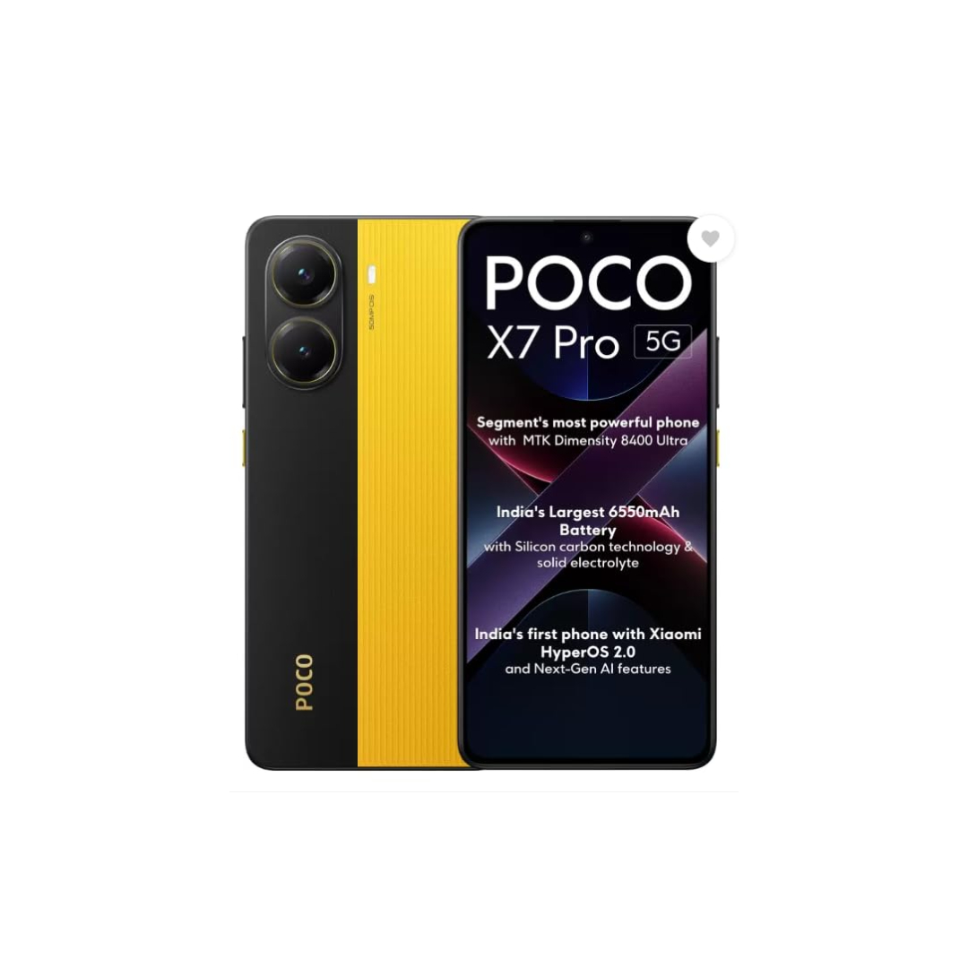 The Poco X7 Pro 5G delivers powerful performance with its Dimensity 8400 Ultra processor, 8 GB RAM, and 256 GB storage for smooth multitasking.