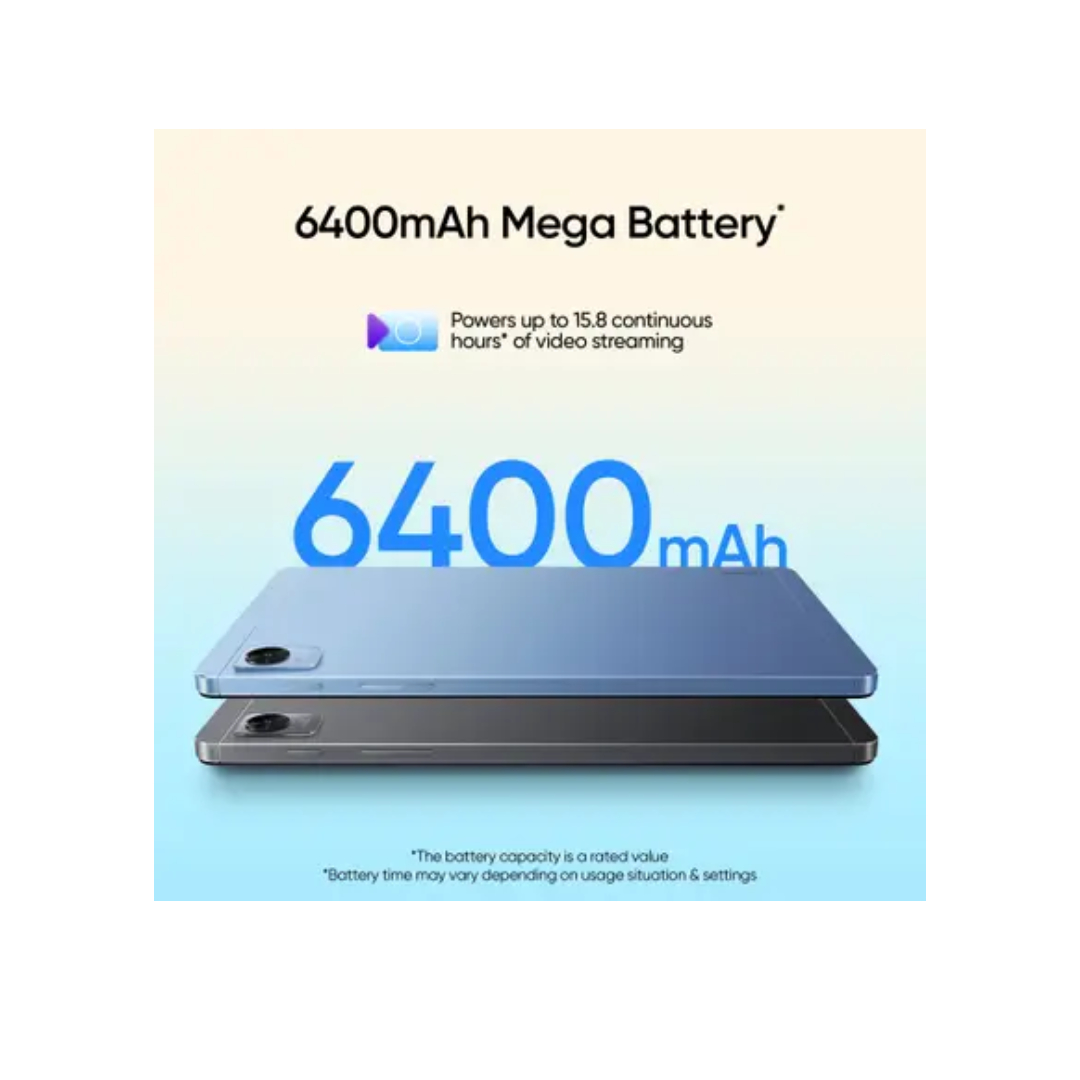 Realme Pad Mini Tablet offers a sleek and compact design with an 8.7-inch display, ideal for entertainment and reading on the go. Powered by a Unisoc T616 octa-core processor, it delivers smooth performance for everyday tasks along with up to 4 GB RAM and up to 64 GB storage. Its 6400 mAh battery ensures long backup with support for fast charging. The tablet features an 8 MP rear camera and 5 MP front camera for clear photos and video calls. It also supports expandable storage, making it a practical and lightweight tablet for daily use.